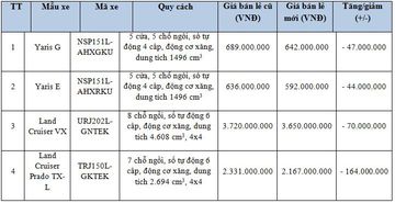 Toyota Việt Nam vừa thông báo mức giá bán lẻ mới cho các dòng xe Toyota và Lexus với mức giảm cao nhất là 164 triệu đồng.