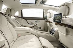Khoang hành khách phía sau rộng rãi với 2 ghế thương gia, có thể ngả tối đa về phía sau lên đến 43,5°, tích hợp đệm đỡ bắp chân, đỡ chân điều chỉnh điện cùng chức năng massage 6 chế độ (bao gồm 2 chế độ massage đá nóng). Xe còn được trang bị bộ bàn làm việc và 2 ly Champagne bằng bạc được chế tác thủ công bởi Robbe & Berking cùng ngăn để ly đi kèm.