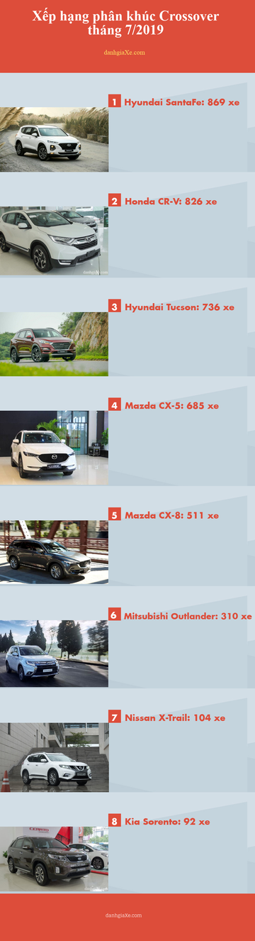 Xếp hạng phân khúc Crossover 7/2019: Hyundai SantaFe dẫn đầu