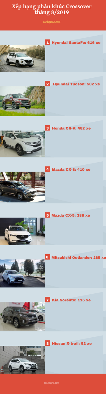 Xếp hạng phân khúc Crossover 8/2019: SantaFe giữ vững phong độ