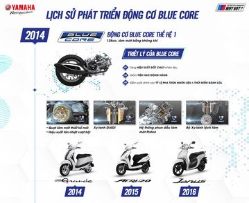 Với mục tiêu mang đến những trải nghiệm phấn khích nhằm khơi dậy đam mê cho khách hàng trên toàn thế giới, Yamaha luôn theo đuổi việc tạo ra một thế hệ động cơ hoàn toàn mới dành cho các mẫu xe ga thành thị. Năm 2014, Yamaha tự hào giới thiệu với thế giới về động cơ BLUE CORE thế hệ đầu tiên với 3 ưu điểm vượt trội: (1) Tăng cường hiệu suất đốt cháy hỗn hợp nhiên liệu, (2) Giảm tiêu hao công năng và (3) Kiểm soát chính xác nguồn cung nhiên liệu và thời điểm đánh lửa.