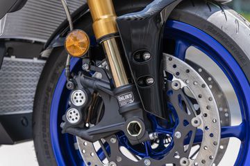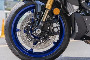 MT-10 trang bị lốp Bridgeston Battlax S22 thế hệ mới nhất, kích cỡ 120/70-17 trước và 190/55-17 sau, đi cùng phanh đĩa kép kích thước lên đến 320mm ở bánh trước và đĩa đơn 220mm ở bánh sau, sẵn sàng đáp ứng các nhu cầu từ đường phố đến đường đua.